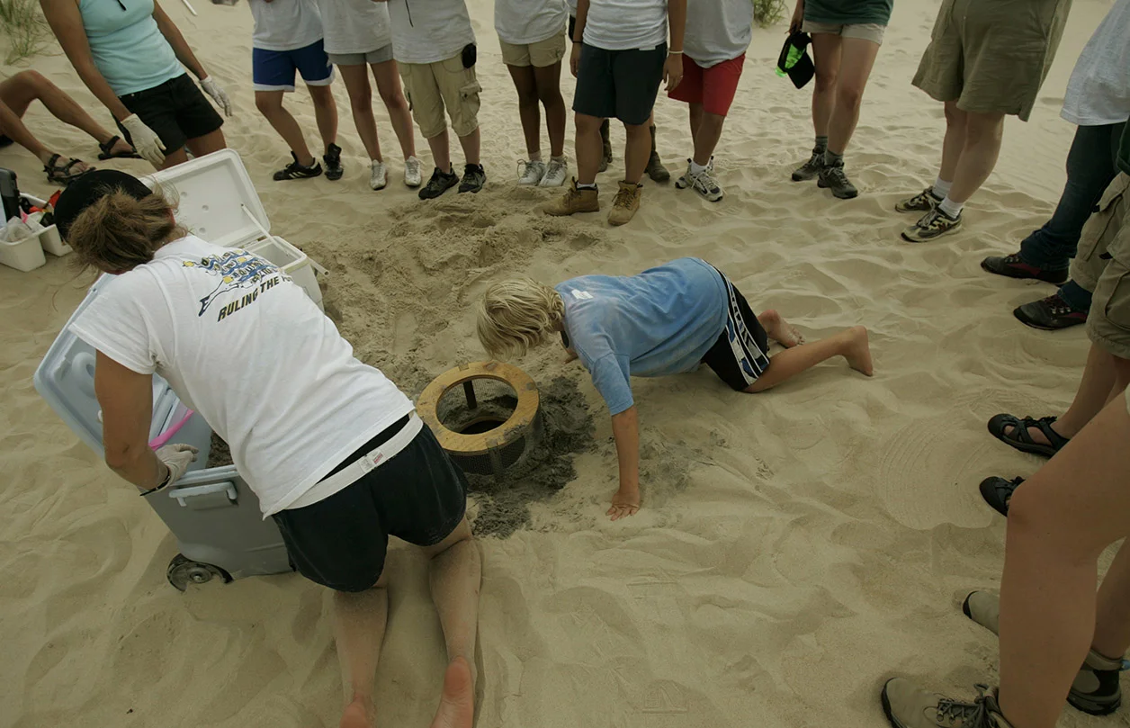 Loggerhead sea turtle eggs on the beach at Back Bay National Wildlife Refuge before being move to the Back Bay nursery site behind the dunes.
